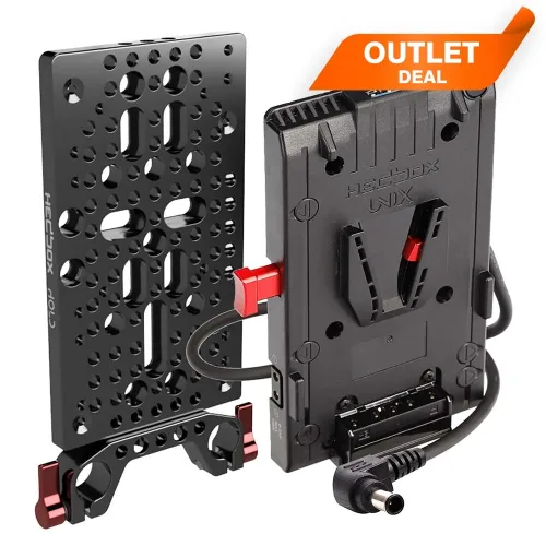 Hedbox UNIX-FX9 V-Lock Mount Professional Cine Battery Plate with 1 x USB (5.1V/2.1A) + 3x D-Tap (14.8V/10A) and 1x Breakaway 50cm DC 19.6V Cable with Regulated EIAJ-05 Male/Right Angle.
